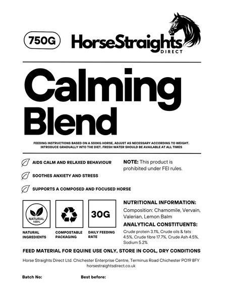 A palatable natural herbal mix designed to aid calm and relaxed behaviour in horses. This everyday calmer helps soothe anxiety and stress, ensuring your horse remains composed and focused. Made with high-quality herbal ingredients including Chamomile, Vervain, Lemon Balm, and Valerian Root.
