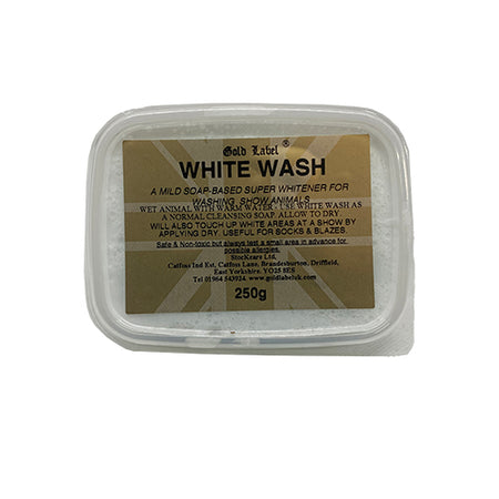 White soap block for washing horses and dogs. Leaves a non-chalk super whitener on the coat for the duration of a show without any powderiness. May also be used for touching up white areas.