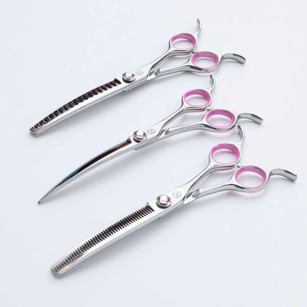 Kanpeki Curved Pink 6.5” Dog Grooming Curved Scissor Set of 3 - Scissor, Chunker, Thinner