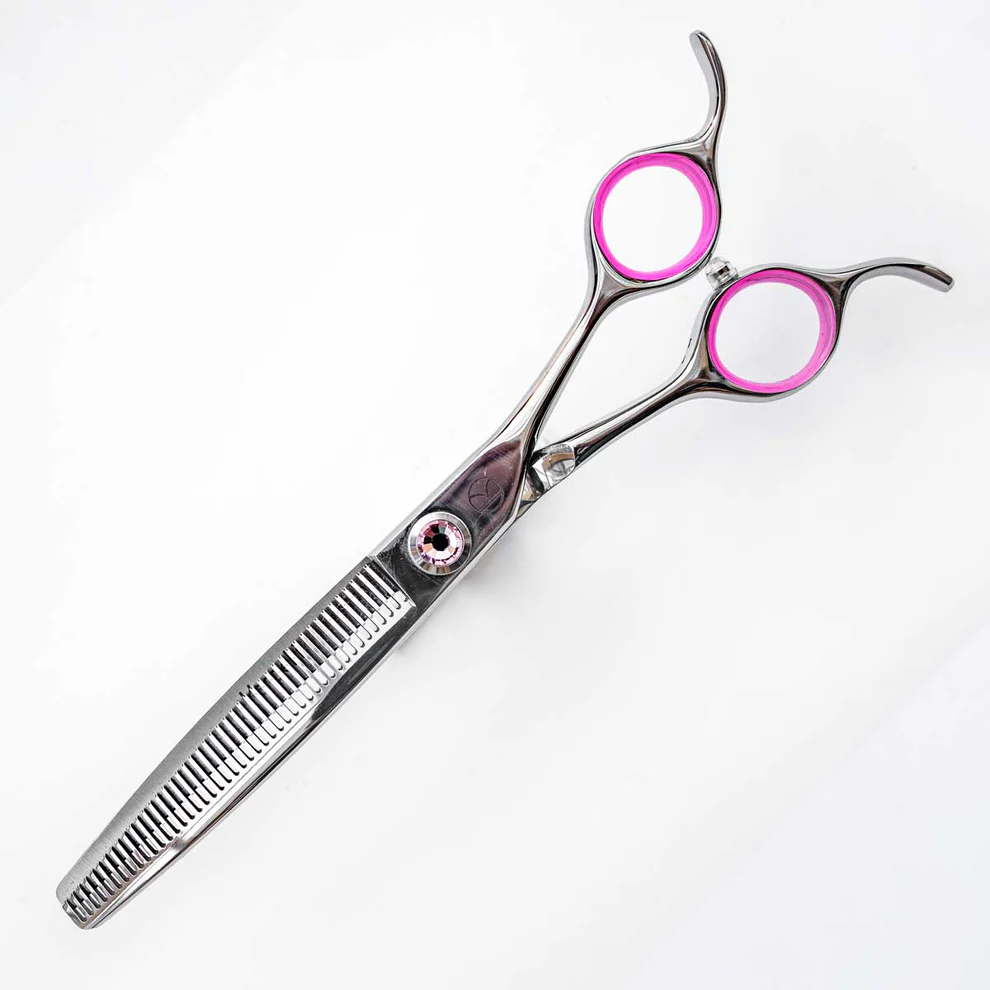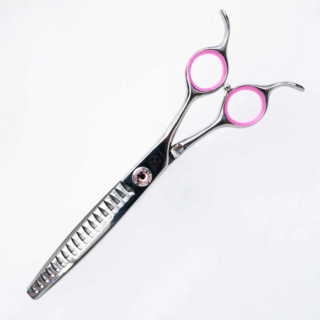A finest quality dog grooming curved scissor set manufactured from tough pure Japanese Stainless Steel giving maximum blade life and tooth strength for a consistent professional finish.